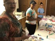 Assembling hygiene kits for the less fortunate and refugees.